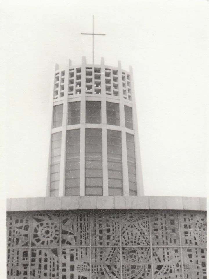 Posteriormente, en la parcela al norte de la casa, se levantó un salón parroquial que, a partir del 13 de marzo de 1965, sirvió como iglesia parroquial temporal hasta que finalmente se concluyó la construcción del templo en la parte oriental de la finca.