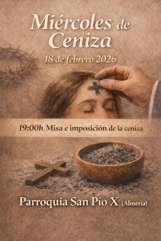 La Parroquia de San Pío X celebrará el próximo miércoles 18 de febrero la Santa Misa con imposición de la ceniza, con motivo del Miércoles de Ceniza, inicio del tiempo litúrgico de la Cuaresma.
