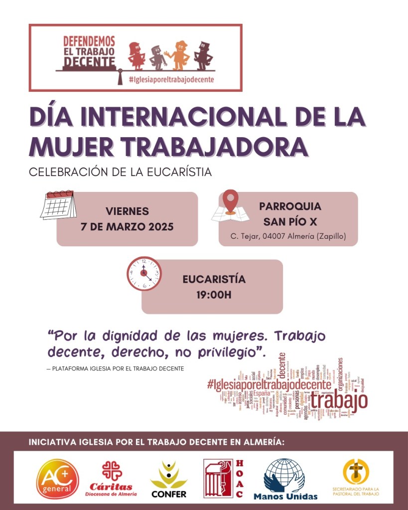 Bajo el lema «Por la dignidad de las mujeres. Trabajo decente, derecho, no privilegio». Acompáñanos para pedir por ellas, especialmente por aquellas que enfrentan dificultades y desafíos en su camino.